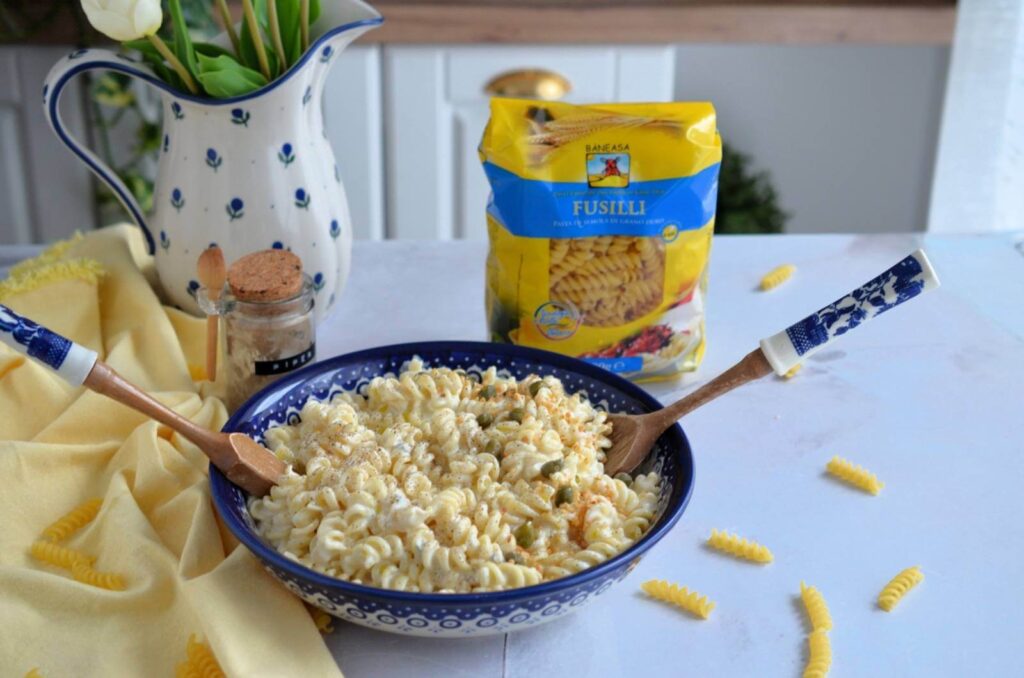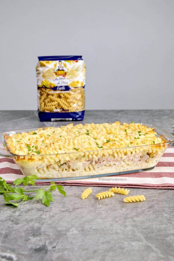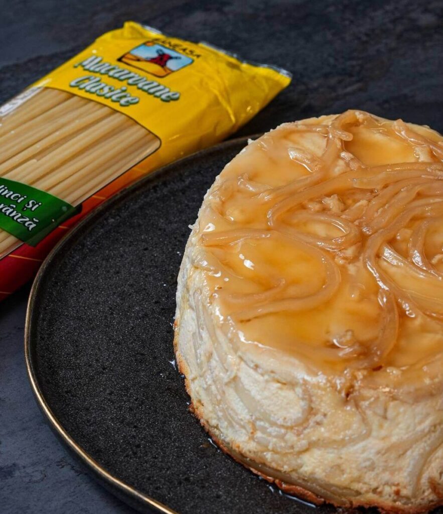 Budincă de macaroane cu brânză dulce la cuptor