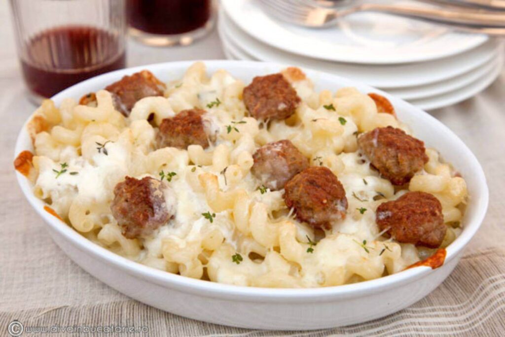 Paste serpentelli cu chifteluțe la cuptor