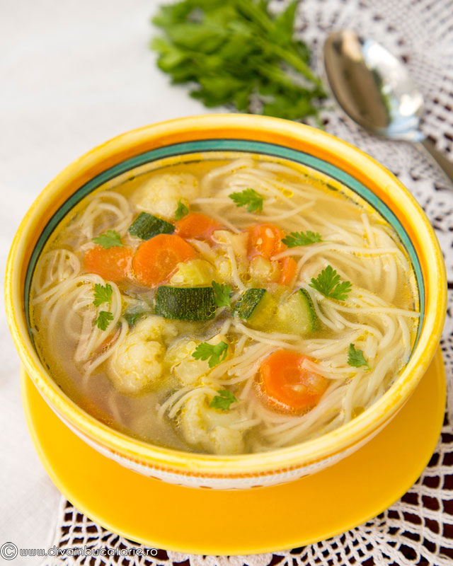 Supă de legume cu fidea cuiburi